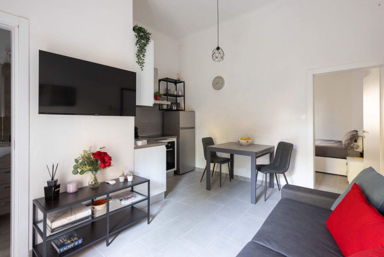 Entrando nell’immobile subito rimarrete piacevolmente stupiti dall’aroma del profumo Vanilla-Tabacco che avvolge delicatamente la zona giorno, Parliamo di un luminoso bilocale con ampia camera matrimoniale di oltre 17mq, con grande armadio a 3 ante scorrevoli, Smart tv Led da 43”, letto con materasso in memori foam alto 26cm e lampade a led.