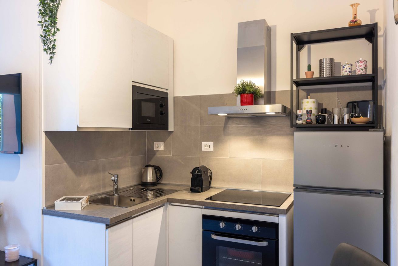 Nella zona giorno la cucina è dotata di nuovo piano ad induzione e forno per permettervi di cucinare quello che preferite, completa la cucina un pratico microonde.