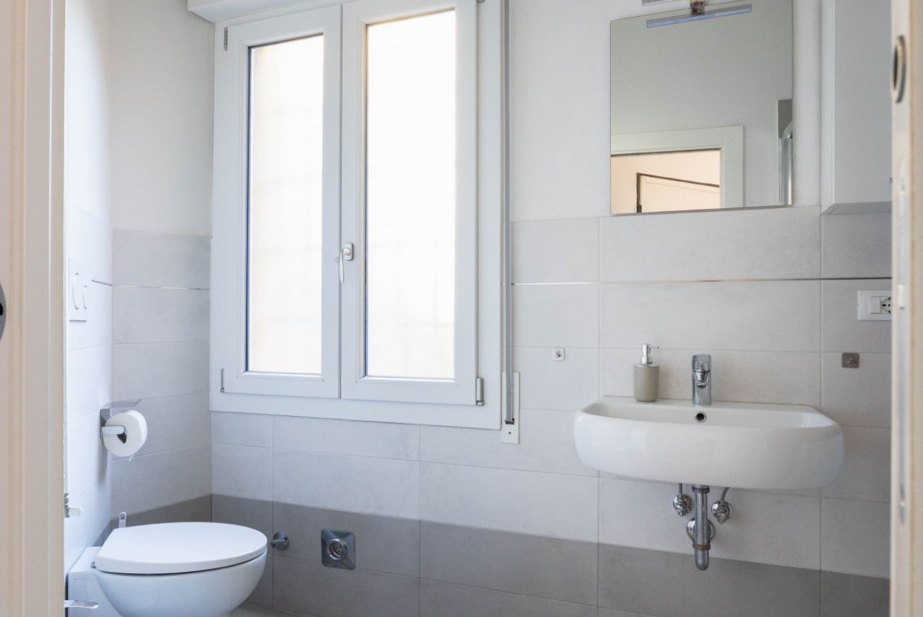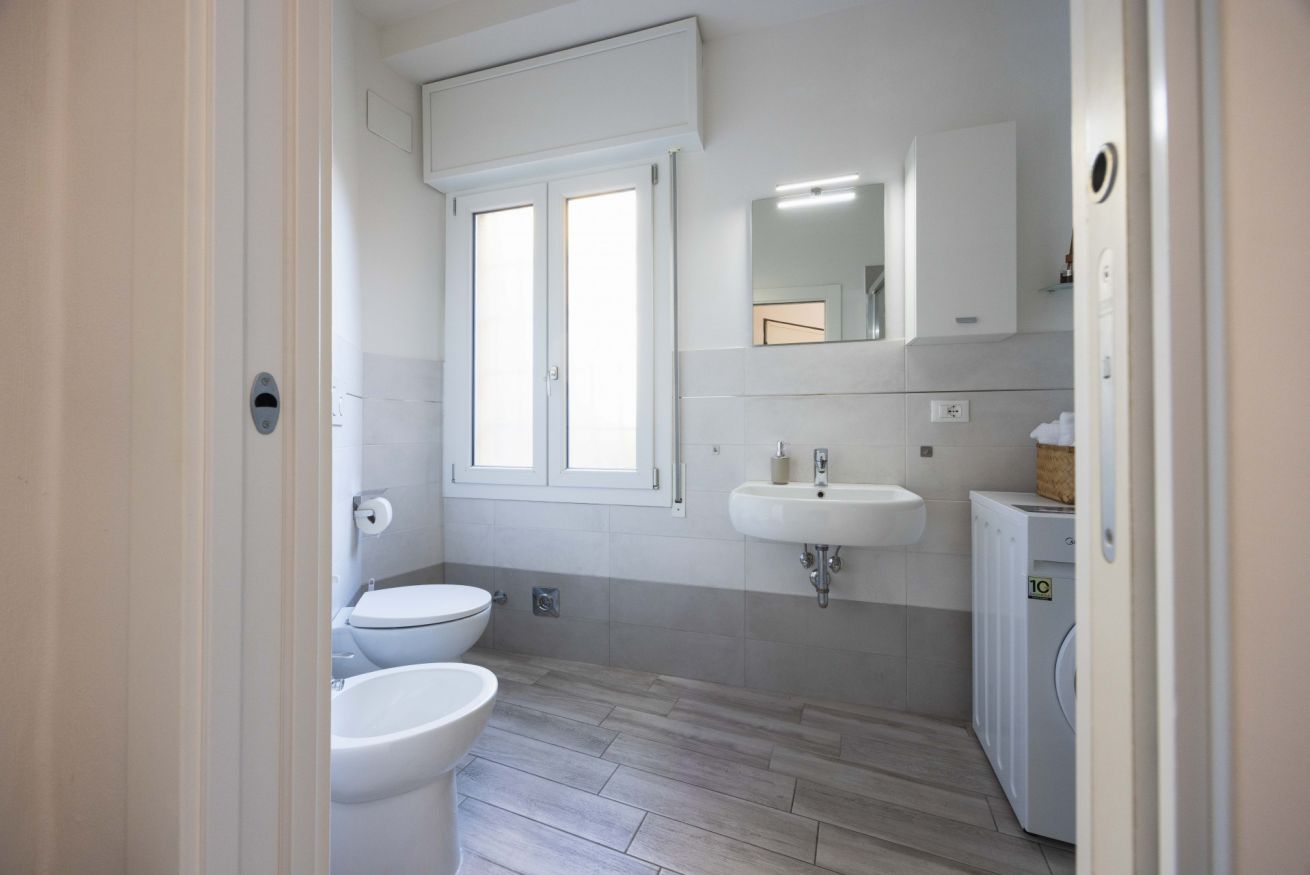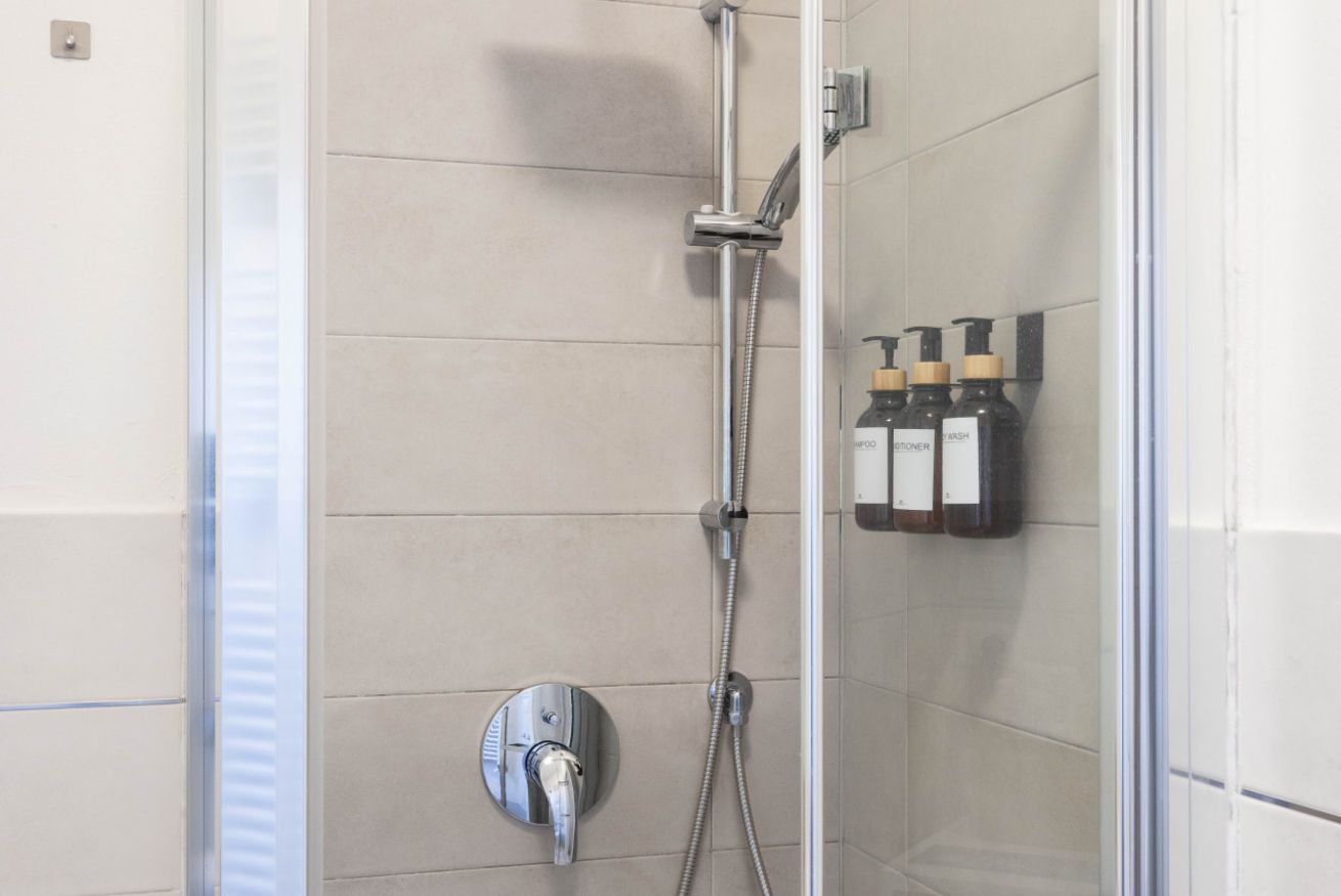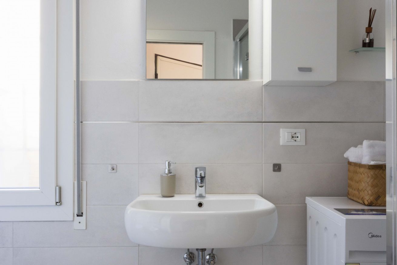 Il bagno moderno offre una doccia ampia, lavatrice e tutto ciò che occorre per un soggiorno confortevole. Gli interni sono puliti, essenziali e progettati per garantire un’esperienza piacevole e senza pensieri.