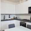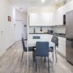 Questo elegante appartamento al piano terra unisce comfort moderno e atmosfera accogliente, offrendo spazi luminosi e curati ideali per soggiorni brevi o di lavoro. La zona giorno è ampia e funzionale, caratterizzata da una cucina completamente attrezzata con frigorifero di grandi dimensioni, piano cottura, forno, microonde e tutto il necessario per preparare pasti in totale autonomia. Il tavolo da pranzo e il comodo divano permettono di vivere l’ambiente con praticità e relax.