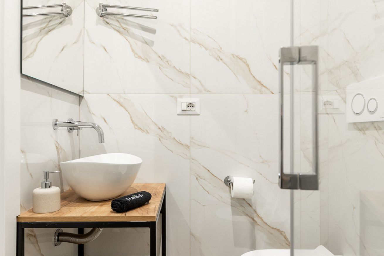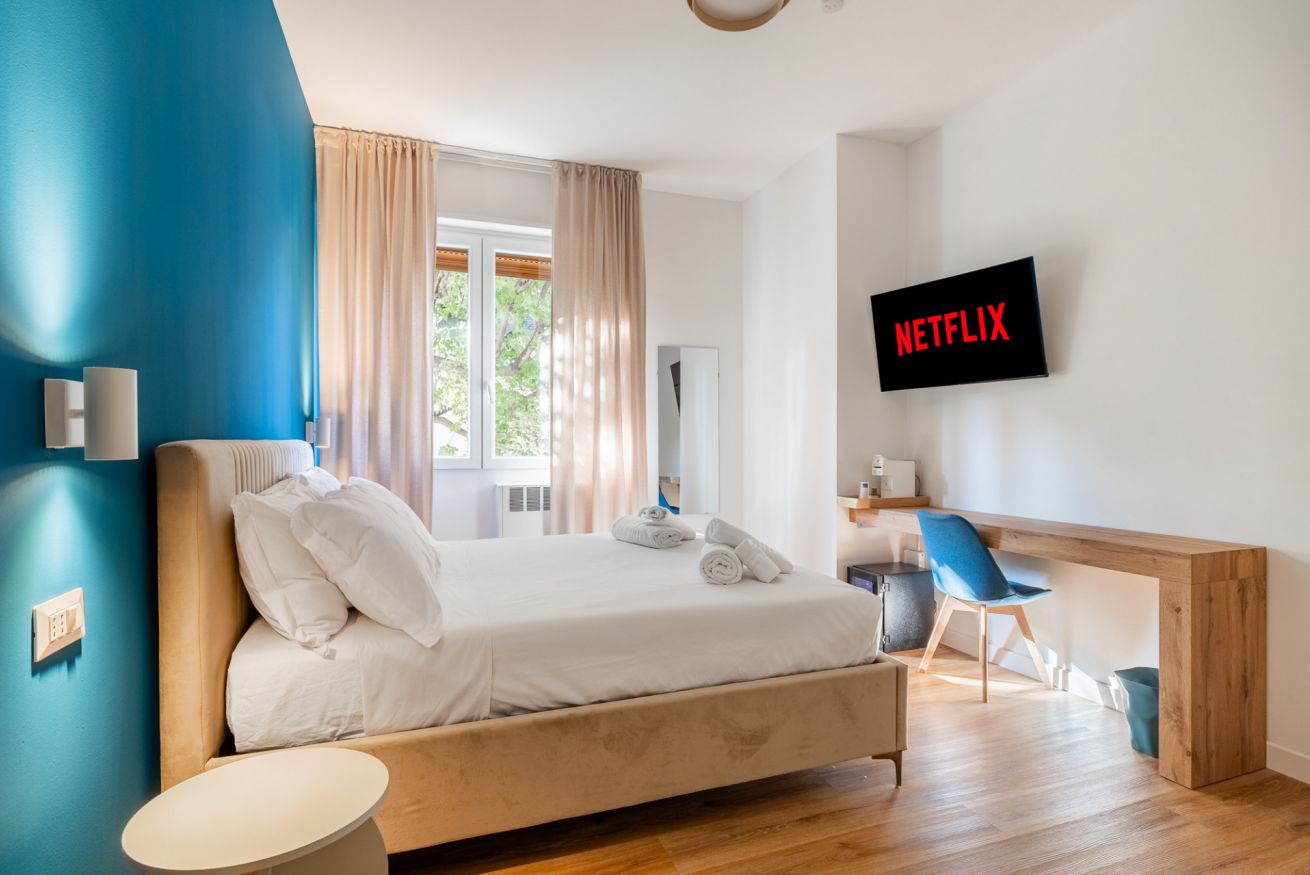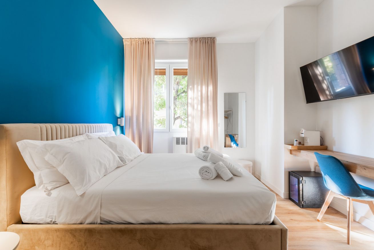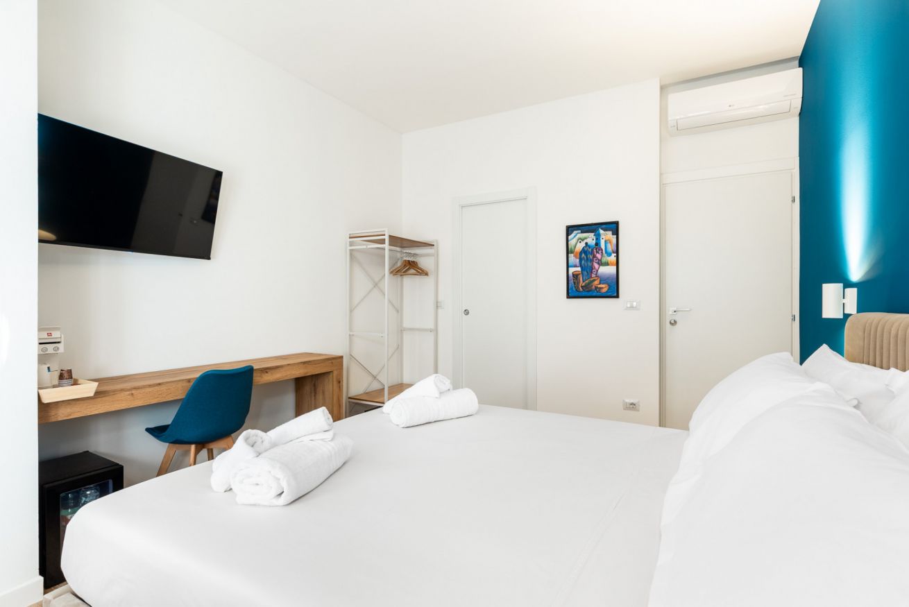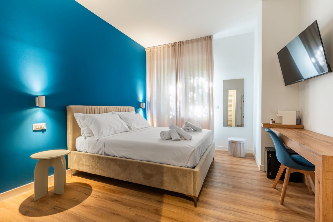 Un’oasi di comfort e stile: la nostra Camera 3, con i suoi quasi 17m², regala spazi ampi e raffinati, impreziositi da arredi eleganti e dettagli di design. L’accesso esclusivo al bagno privato, moderno e luminoso, completa l’esperienza con doccia spaziosa e finiture di pregio, offrendo a chi prenota un ambiente unico, curato e accogliente per un soggiorno indimenticabile.