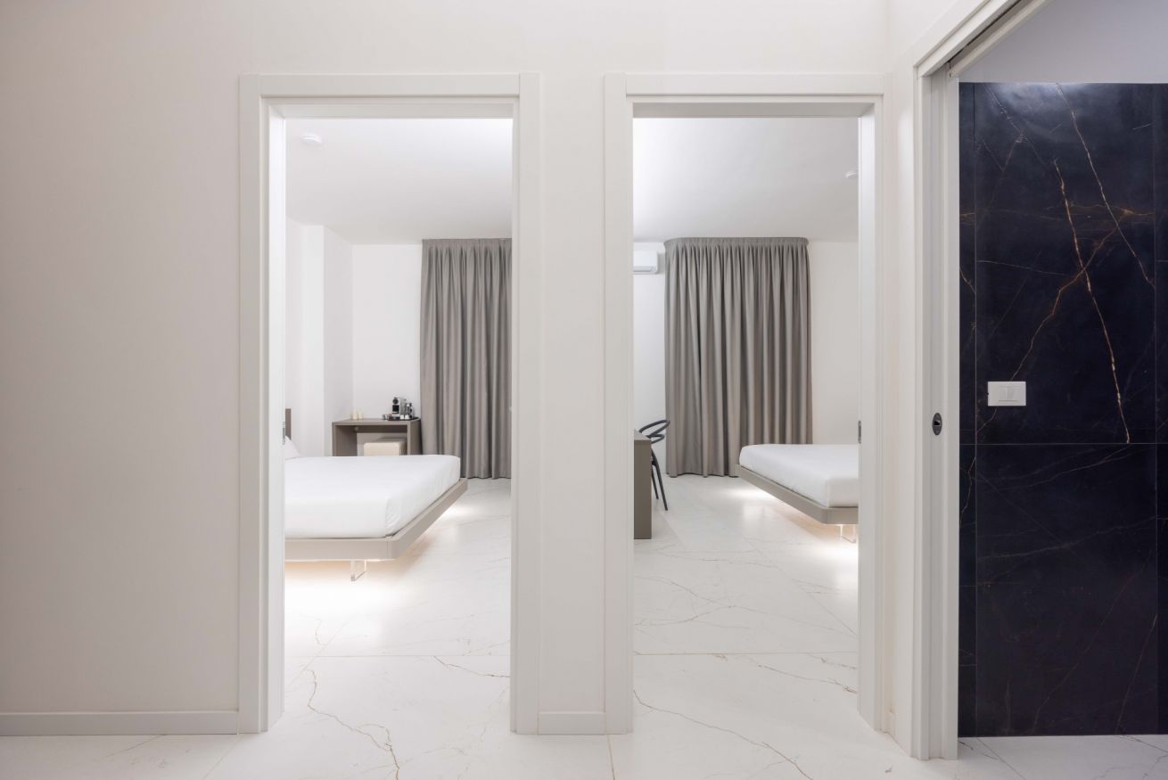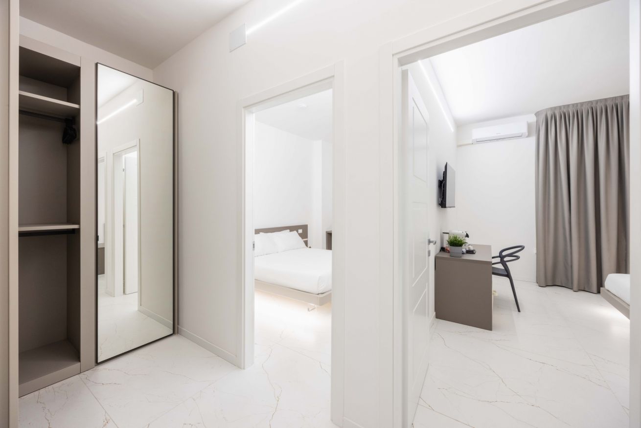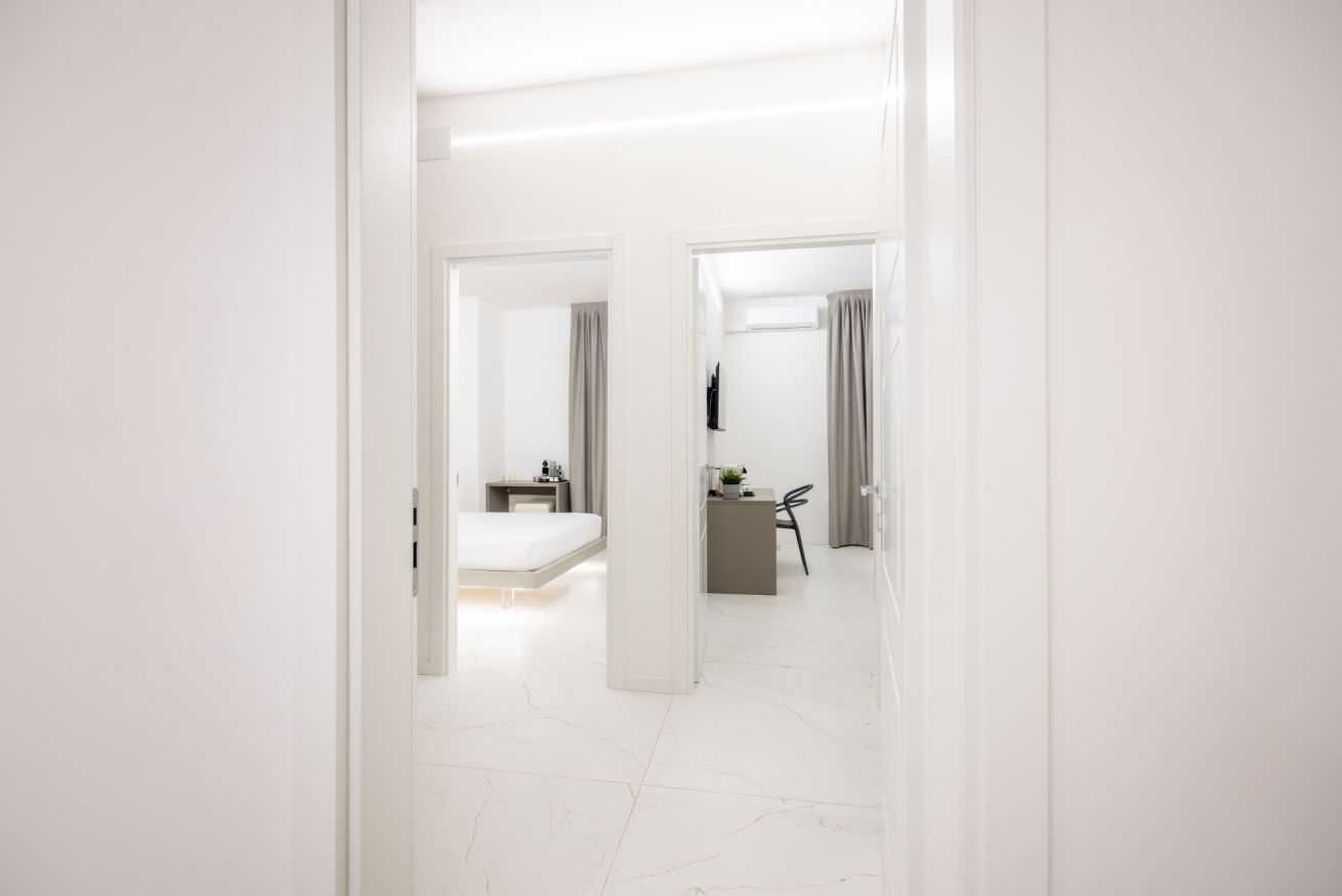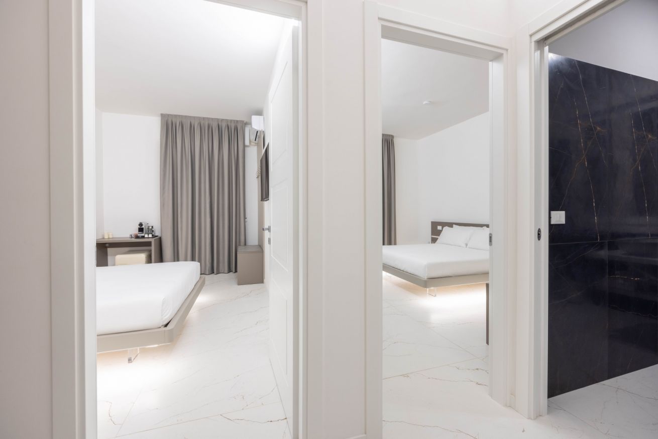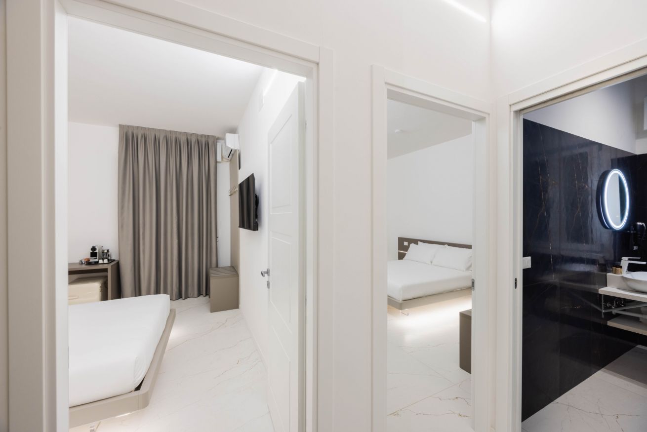 Benvenuto alla Excelsior Station Suite 4, Due ampie camere, moderne ed eleganti, progettate con cura per garantire un soggiorno indimenticabile. L’arredamento di design, raffinato e impeccabile, crea un ambiente esclusivo e rilassante, perfetto sia per viaggi di piacere che di lavoro.