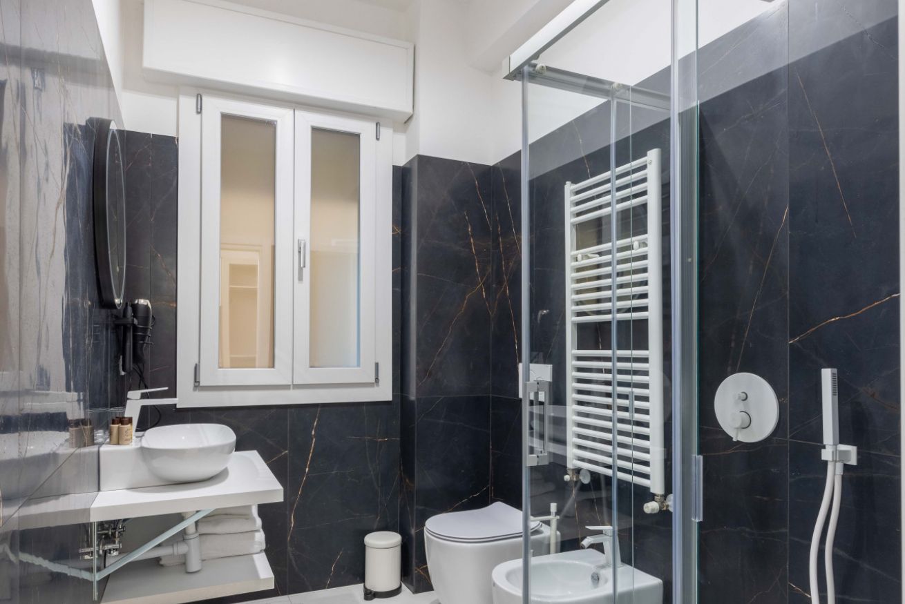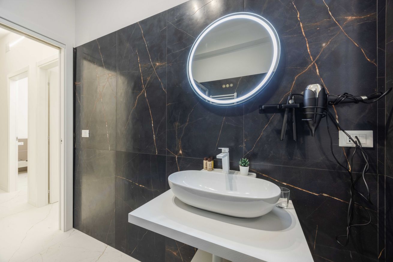 La suite offre un ampio bagno privato con finiture di pregio e dettagli lussuosi, pensati per il tuo massimo comfort. Ogni elemento è scelto con attenzione per rendere l’esperienza piacevole e funzionale.