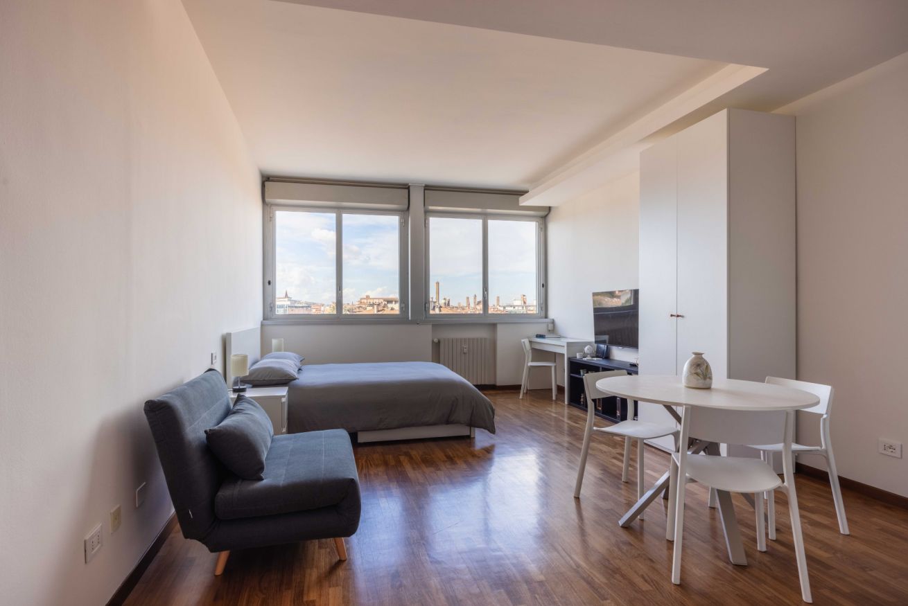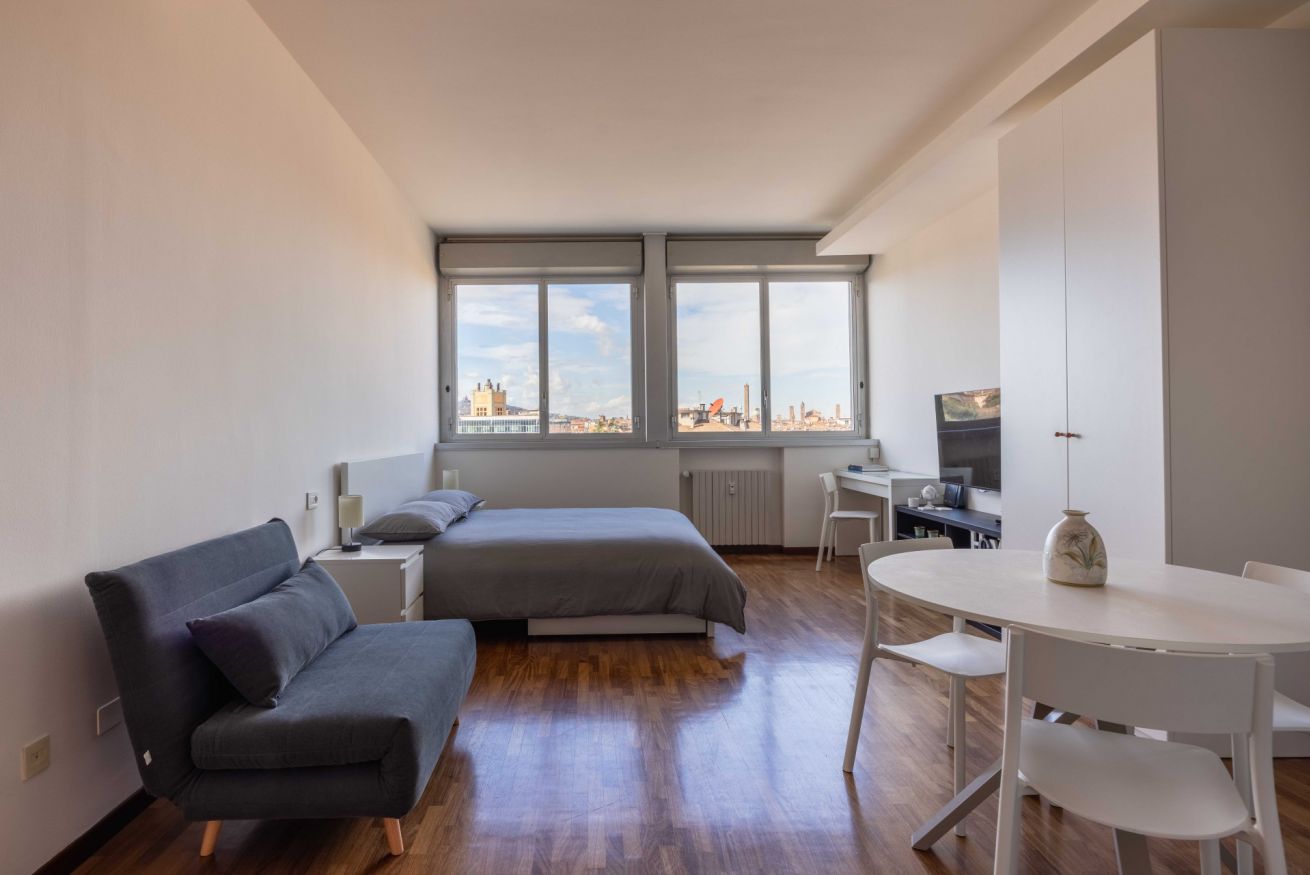 Benvenuti nel nostro accogliente monolocale nel cuore di Bologna! Qui troverete tutto il necessario per un soggiorno confortevole e piacevole. Il nostro spazio dispone di un ampio letto matrimoniale per una dolce notte di sonno, oltre a un comodo divano letto da 90 cm per un ospite aggiuntivo. Potrete rilassarvi davanti alla nostra ampia TV LED da 49 pollici dopo una giornata di esplorazione della città. La cucina è completa di tutto il necessario per preparare i vostri pasti, comprese posate, stoviglie e una macchinetta per il caffè a cialde. Non dimenticate il bollitore e il frigorifero per mantenere freschi i vostri prodotti preferiti. Forniamo anche biancheria da letto e asciugamani per un'esperienza senza preoccupazioni.